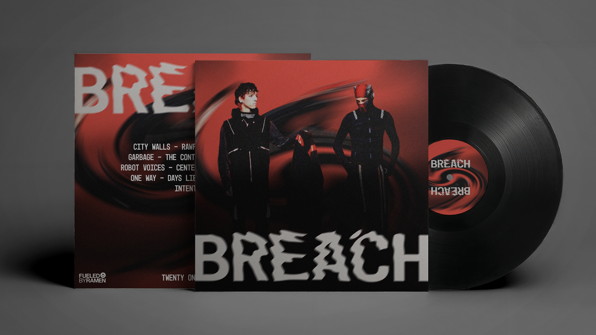 O projeto BREACH foi um exercício de direção de arte com o objetivo de construir uma identidade visual completa e uma campanha de marketing a partir de uma única fotografia do Twenty One Pilots.